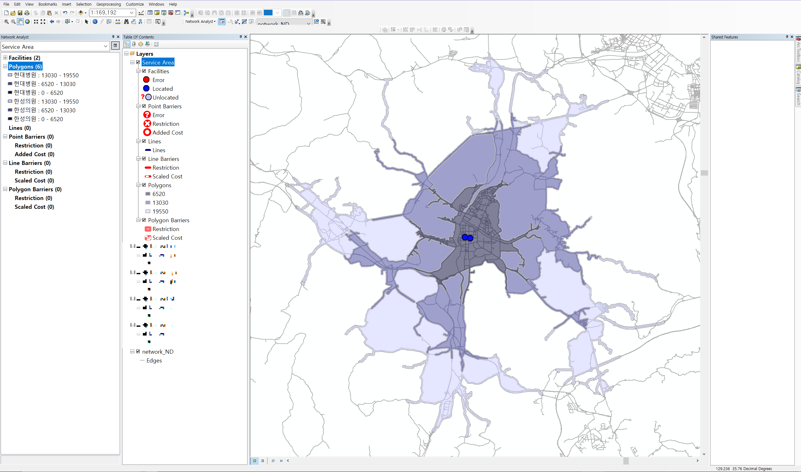 1. TOC에 network 데이터, 병원 point 데이터를 불러온다.