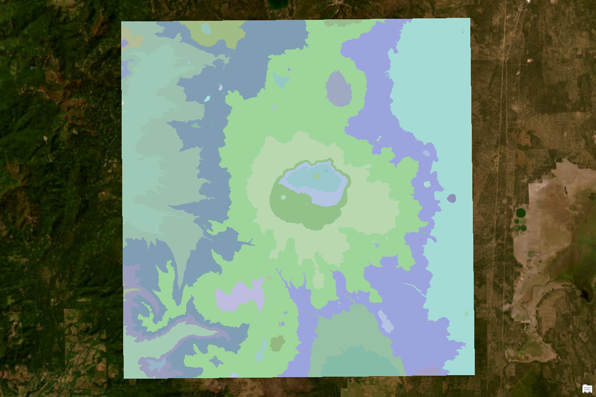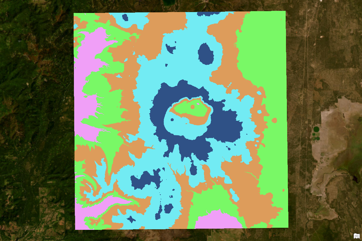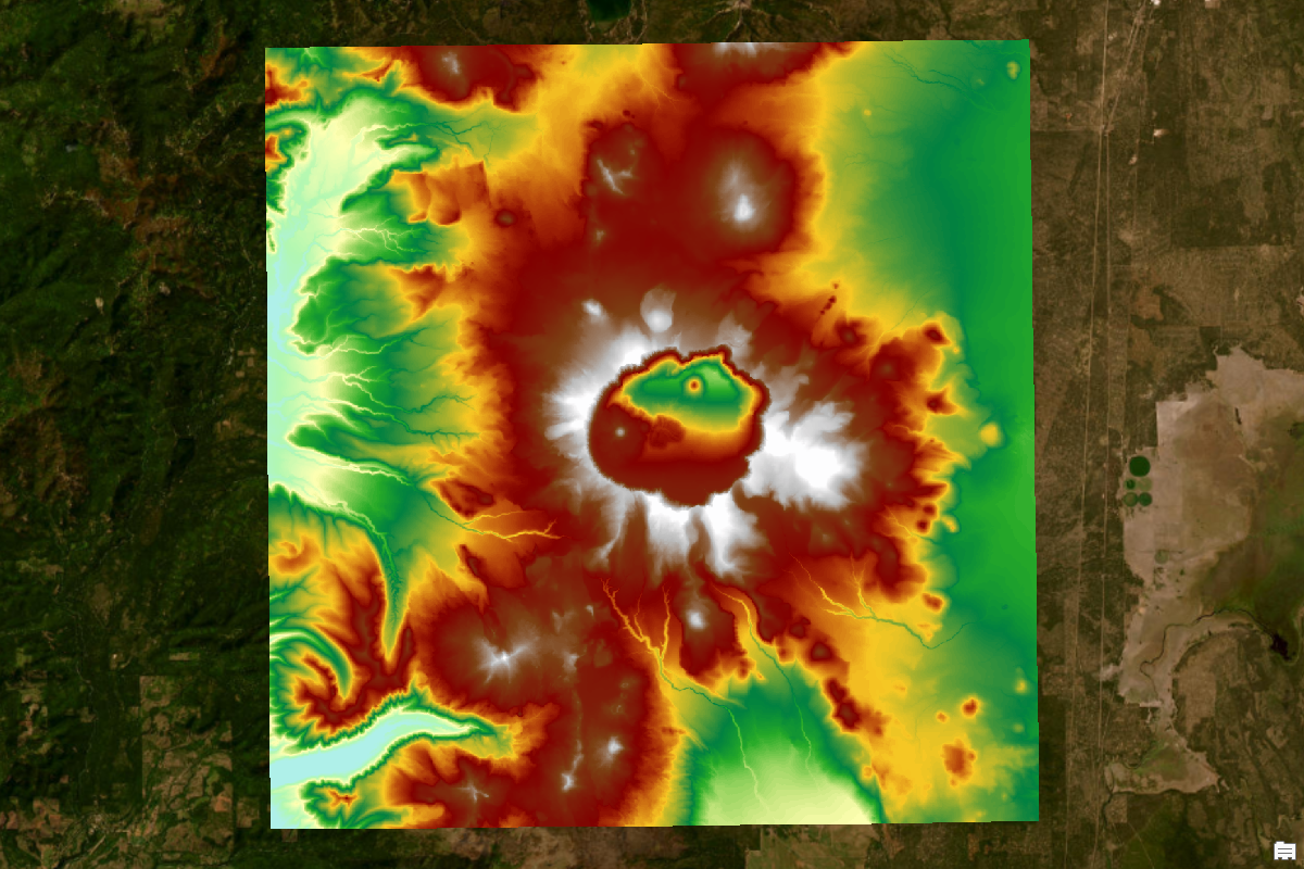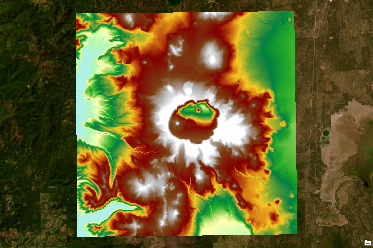 Hillshading simulates how the terrain looks with the interaction between a hypothetical light source and surface features