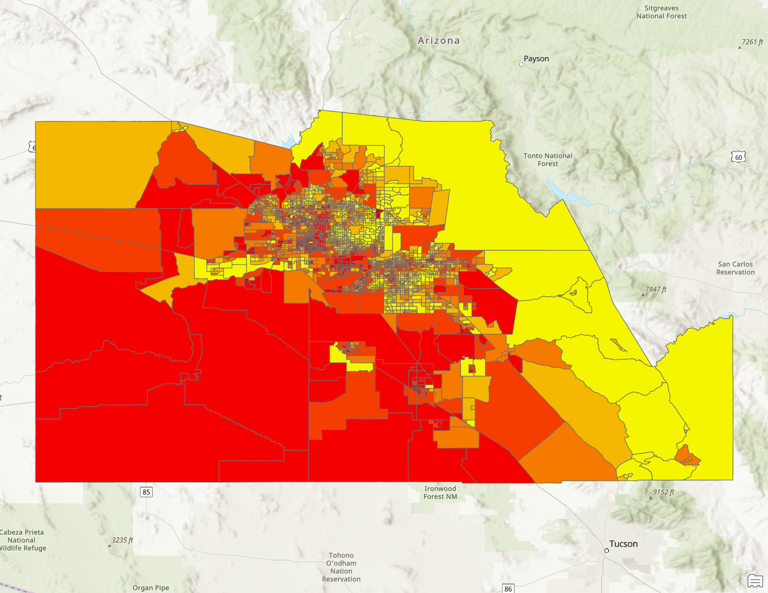 - CBG 경계가 래스터 픽셀과 맞지 않을 때 → ArcGIS는 폴리곤에 겹치는 픽셀 값만 평균에 사용.