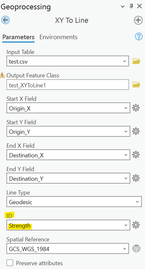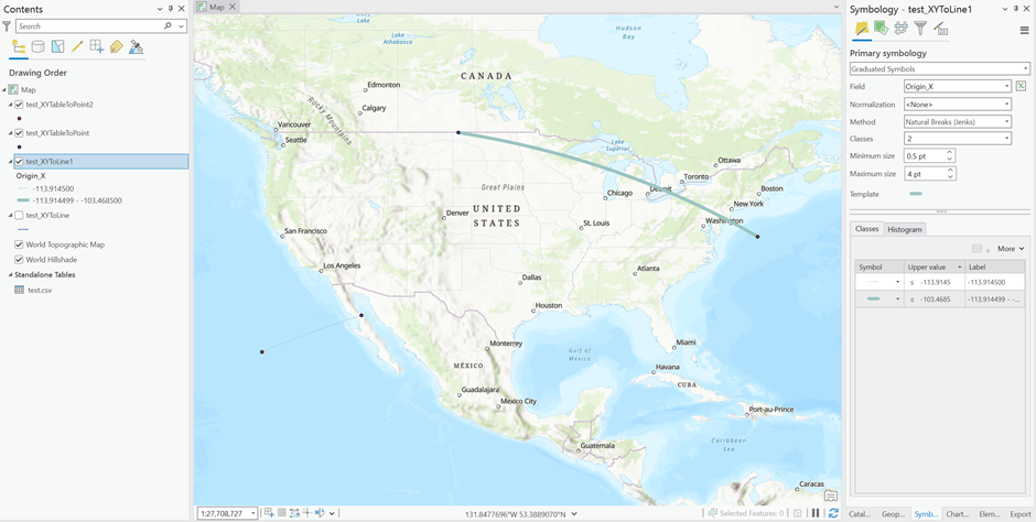 - XY Table to Point tool 툴을 활용하여 Point1, Point2 레이어를 각각 생성한다.