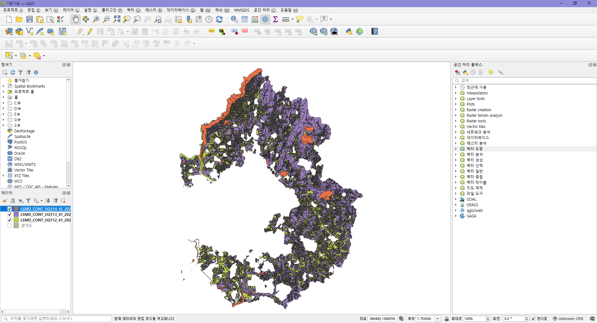 농림지역, 관리지역, 자연환경보전지역 shp를 하나의 shp로 합치기